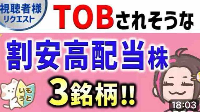 TOB【視聴者様リクエスト】TOB期待の1倍割れの高配当株3選!
