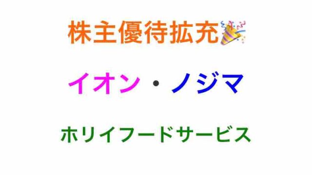 株主優待【株主優待拡充】イオン・ノジマ・ホリイフードサービスの優待内容と株価指標!