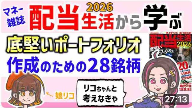 前回に引き続き、マネー雑誌「配当生活2026」を参考に娘リコとインフレ時代に勝ち抜くための底堅いポートフォリオを作っていきます。