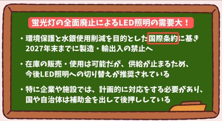 2027年末までに蛍光灯の生産が終了します。国際条約に基づき、輸出入も禁止されるって知ってました?