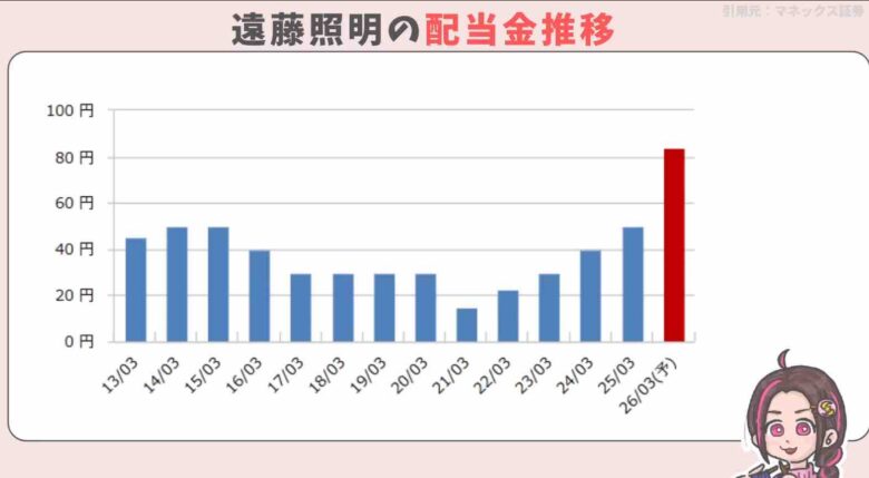 今期の配当金は未定です💦前期と同じ1株55円とすると、配当利回りは4.58%になります。