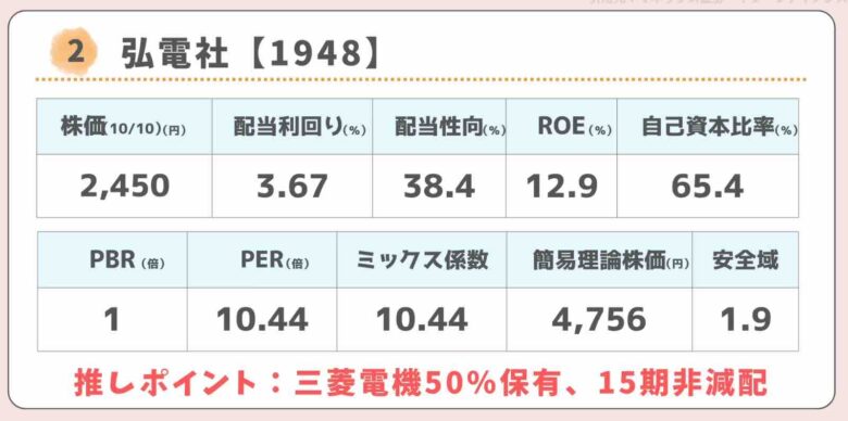 三菱電機が大株主で50%も保有しています!有利子負債ほぼなしの財務健全企業です。株価指標はまだ割安水準ですから、三菱電機によるTOBも考えられます。