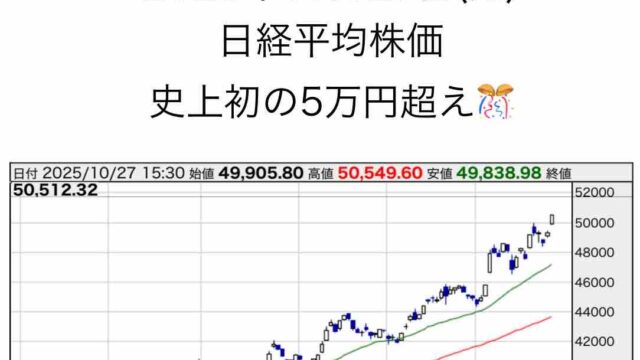 昨日、2025年10月27日(月)は日経平均株価が初の5万円を突破した歴史に残る記念すべきホワイトマンデーとなりました🎊🙌 …