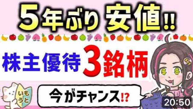 【5年ぶり安値】優待&増配期待の大手食品3社!