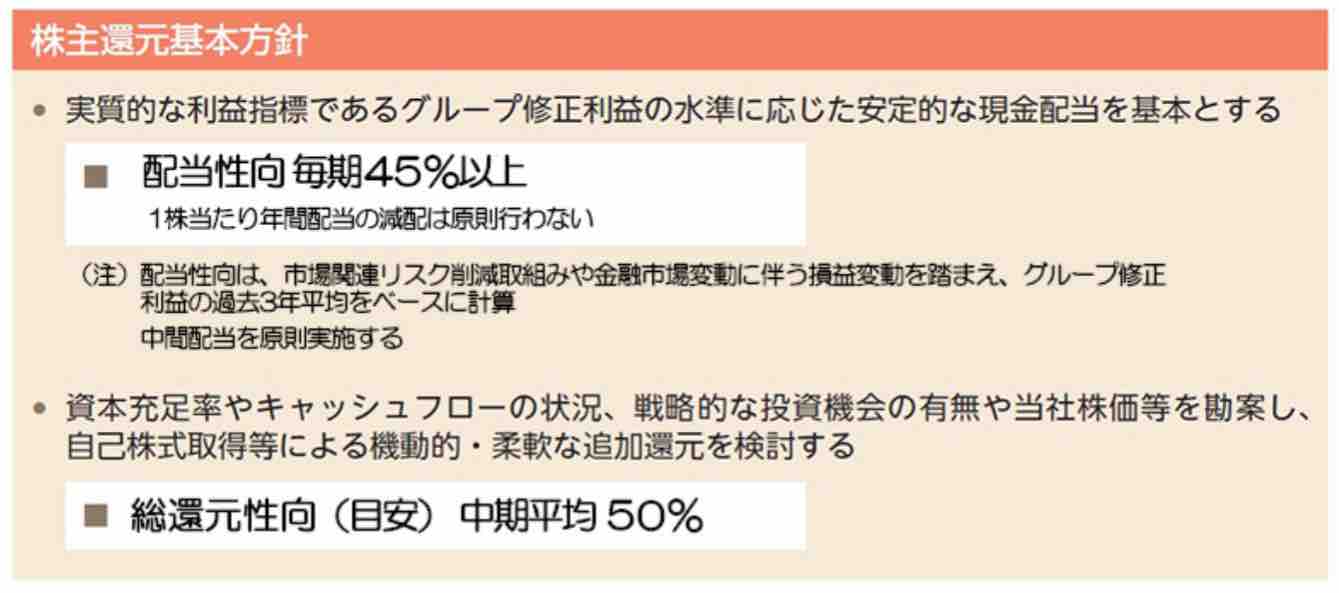 株主還元は、配当性向45%で原則減配は行わない方針です。