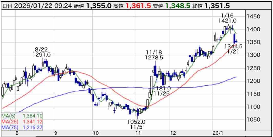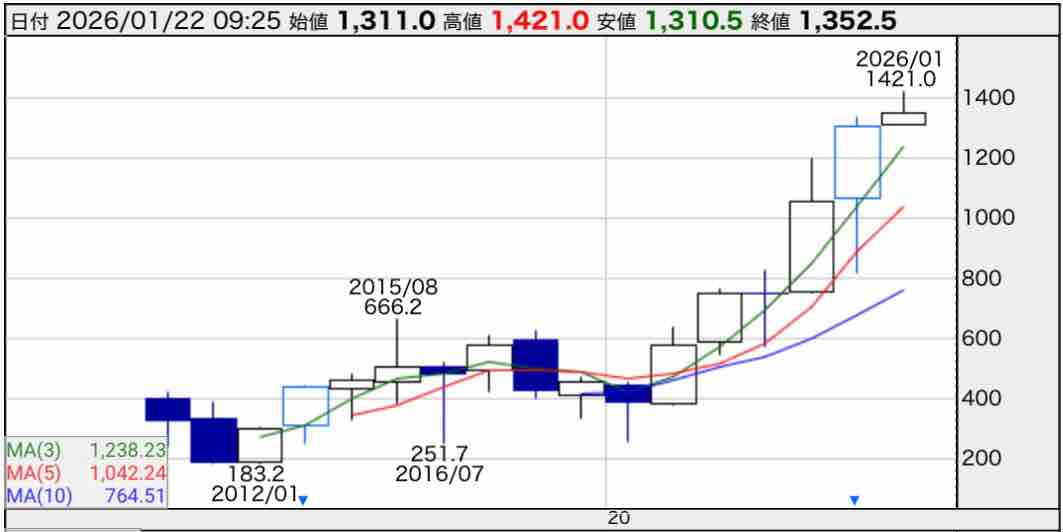 年足チャートは青天井で、2025年4月に4分割してからも上昇トレンド形成中です。