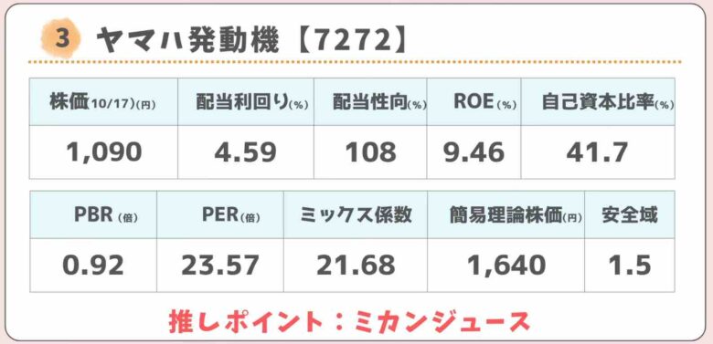 自己資本比率が若干低めです。ミックス係数は高めですが簡易理論株価から比べるとまだ割安です。