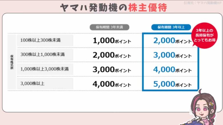 株主優待は3年以上保有で2倍のポイントがもらえるようになりました。
