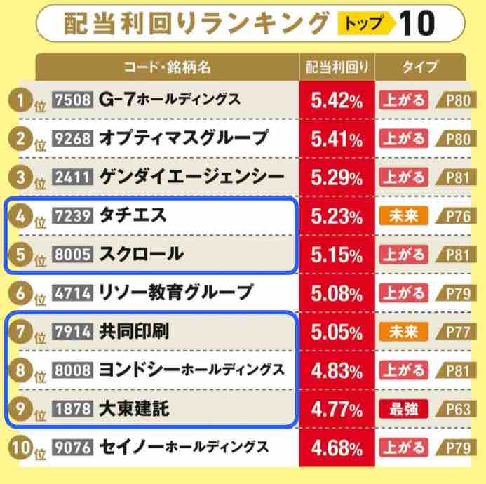 ダイヤモンドZai1月号の高配当株74銘柄のうちTOP10がこちらです。