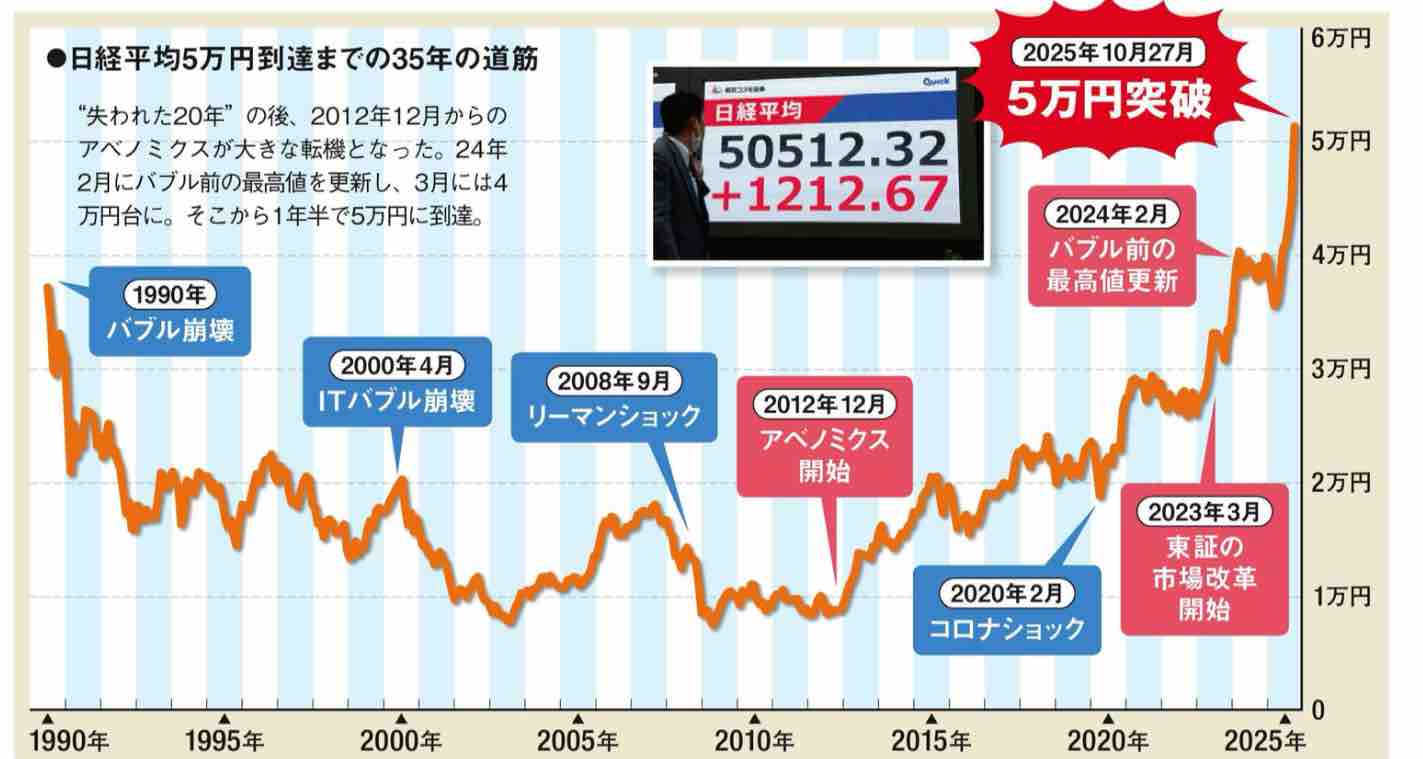日経平均株価が5万円を超えたのは10月27日、まだ1ヶ月しか経っていないんです。その後、11月4日の高値52,636円まで上昇しました。