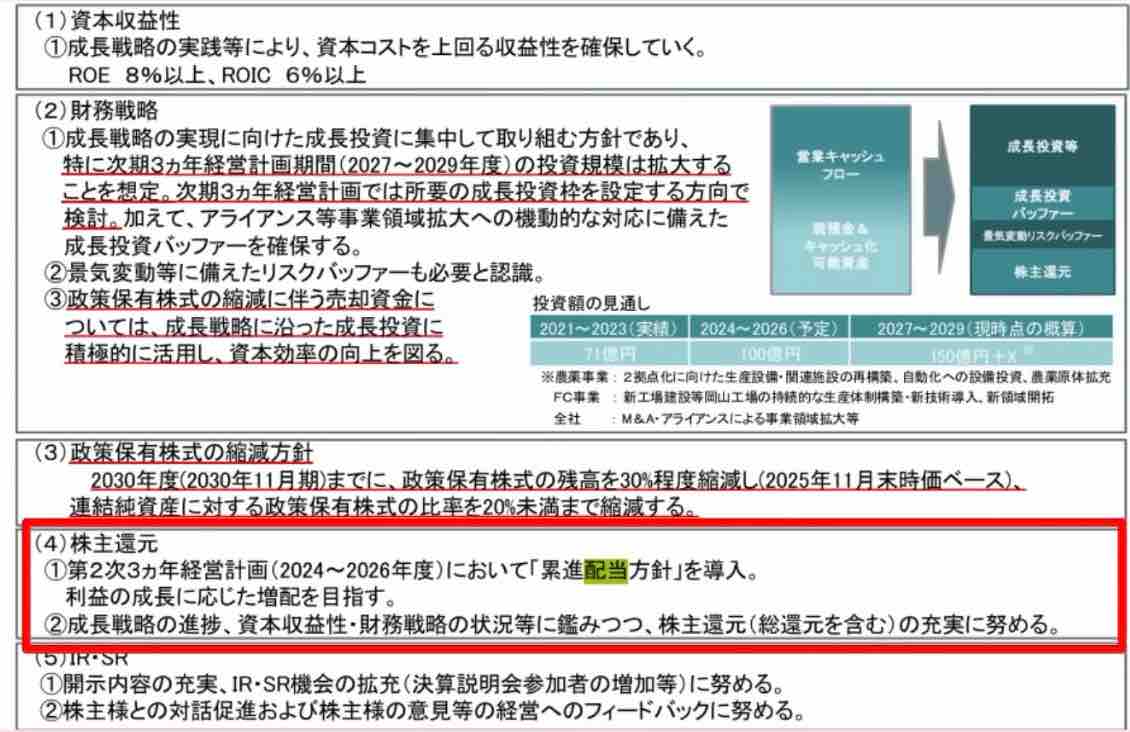 株主還元方針は累進配当を導入しています。