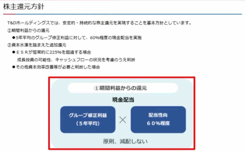 株主還元方針は配当性向60%程度としており、原則減配はしません。