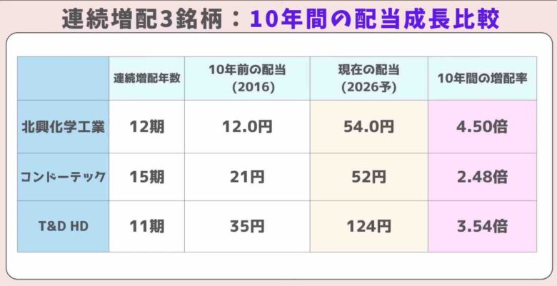 10年間の配当成長比較