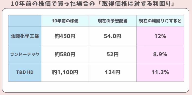 もし10年前に購入していたら、利回りは9〜12%の高配当株になっていたことでしょう♪ まぁ、その頃の妹ちゃんは株式投資とは無縁でしたけど…😅