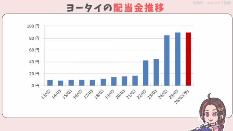 配当金の推移を見るとデコボコしていましたが、DOE3%を導入しましたので今後は安定配当を目指すでしょう。