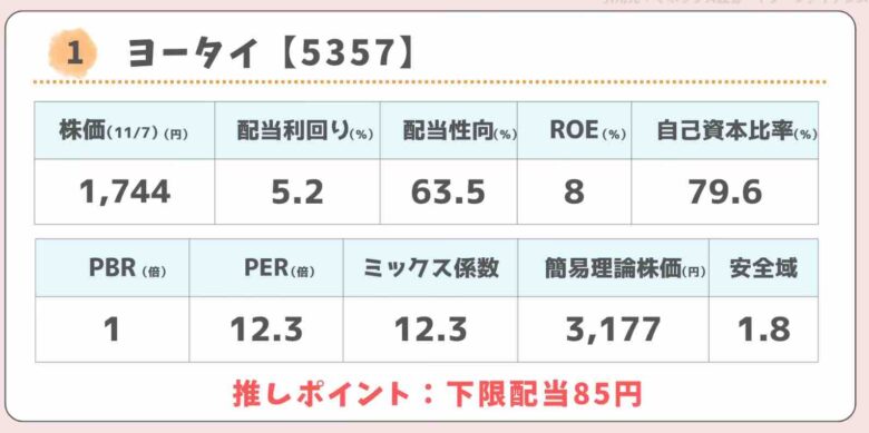 動画内で紹介している3銘柄がこちらで、配当利回りが4.5〜5.2%もあります♪