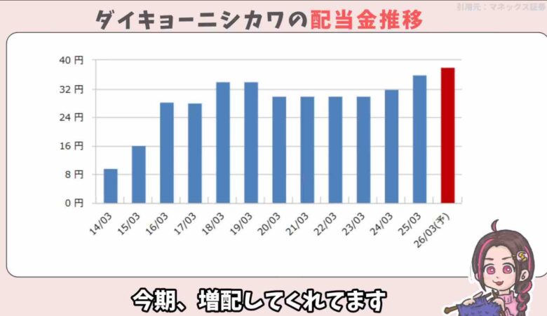配当金の推移はコロナ禍で減配したものの、3期連続増配しています。