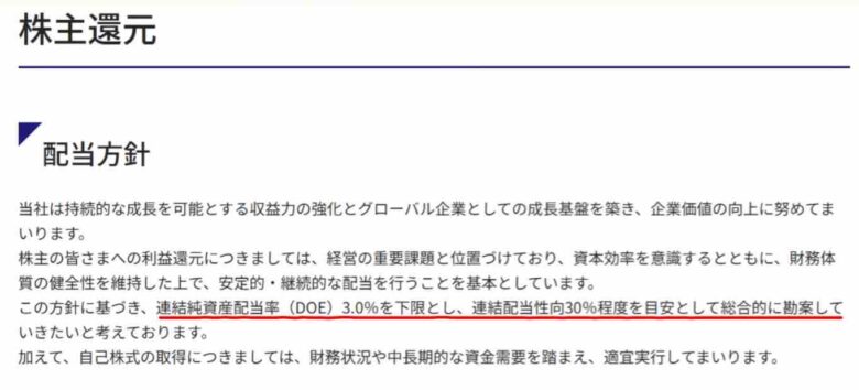 株主還元方針は連結配当性向30%以上を基本方針としています。業績によって配当金が上下しそうですね。