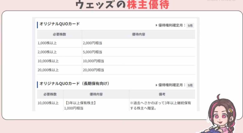 株主優待は1000株以上保有でQUOカード2000円分がもらえます♪