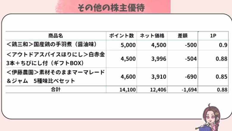 そこで、今回頂いた株主優待品8つをネット価格と調べてみました。