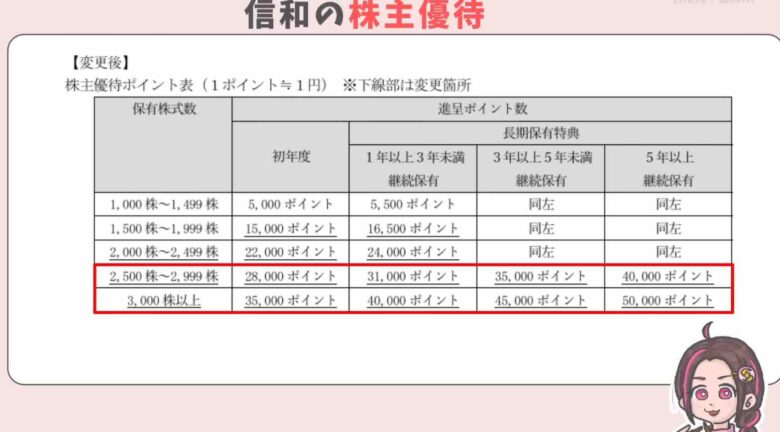 最近変更のあった株主優待は下記の通りです。kinkoは1500株を1年以上保有22000P→16500Pへ改悪されます😭 新たに2000株以上と3000株以上の枠がプラスされ、こちらは拡充となります。