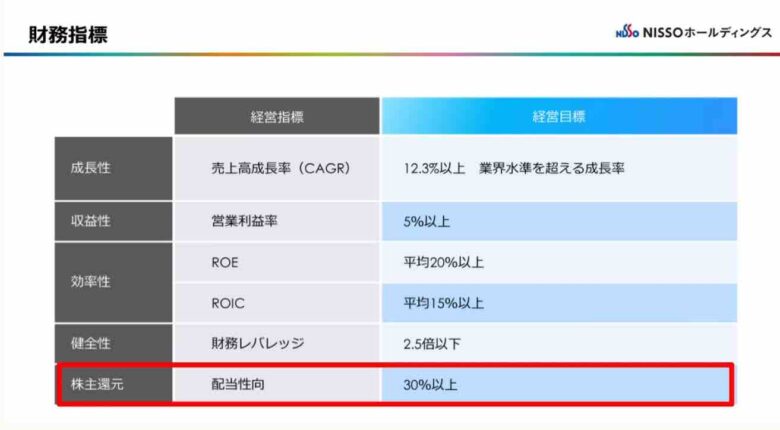 財務指標からの株主還元方針は、配当性向30%以上を掲げています。業績が好調なので増配の余地が残されていそうです♪