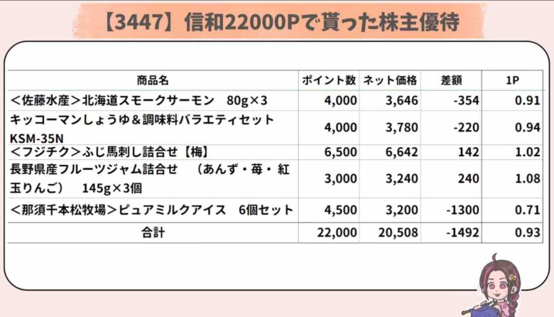 プレミアム優待倶楽部ポイントを株主優待として採用されている企業は、信和のように1000株以上や投資資金が50万円以上必要なことが多いです。