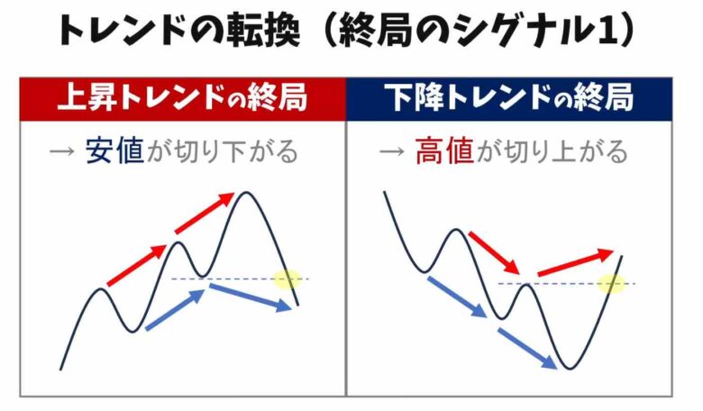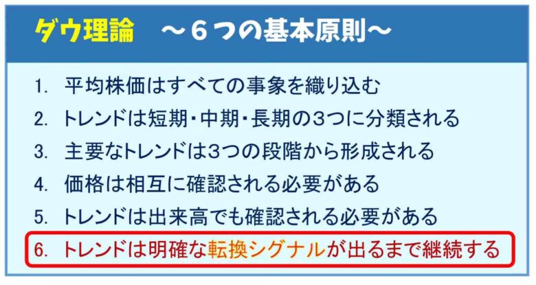 初心者さんは6番の「トレンドは明確な転換シグナルが出るまで継続する」のみ覚えて欲しいです。