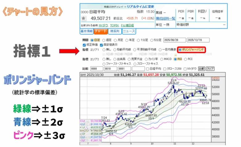 +2σに到達すると買われすぎ、−2σにいくと売られすぎの目安と言われています。