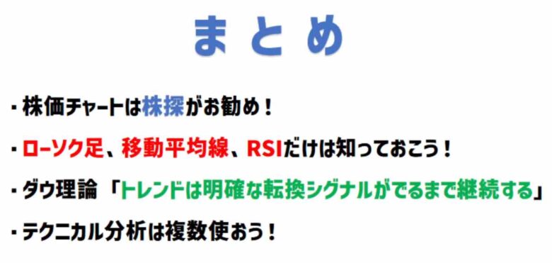 初心者さんはローソク足、移動平均線、RSIの3つだけは覚えて欲しいです。