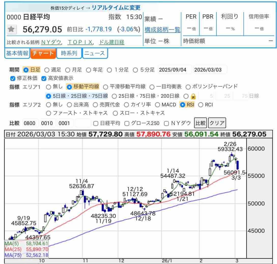 本日の日経平均株価は−3%以上値下がりしました💦