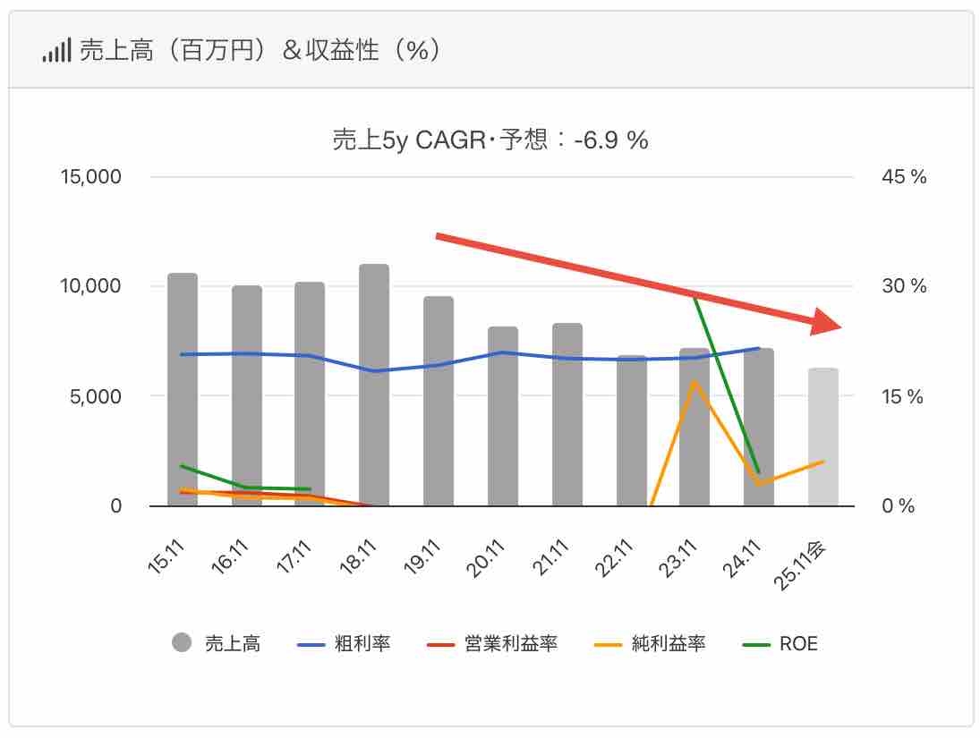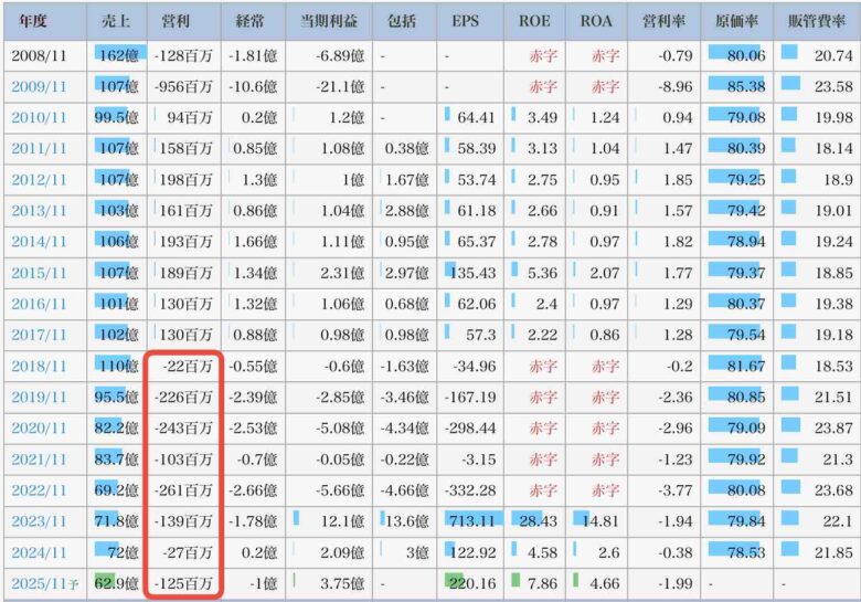 本業の営業利益が8年連続赤字です💦ここが不安要素ですね😅