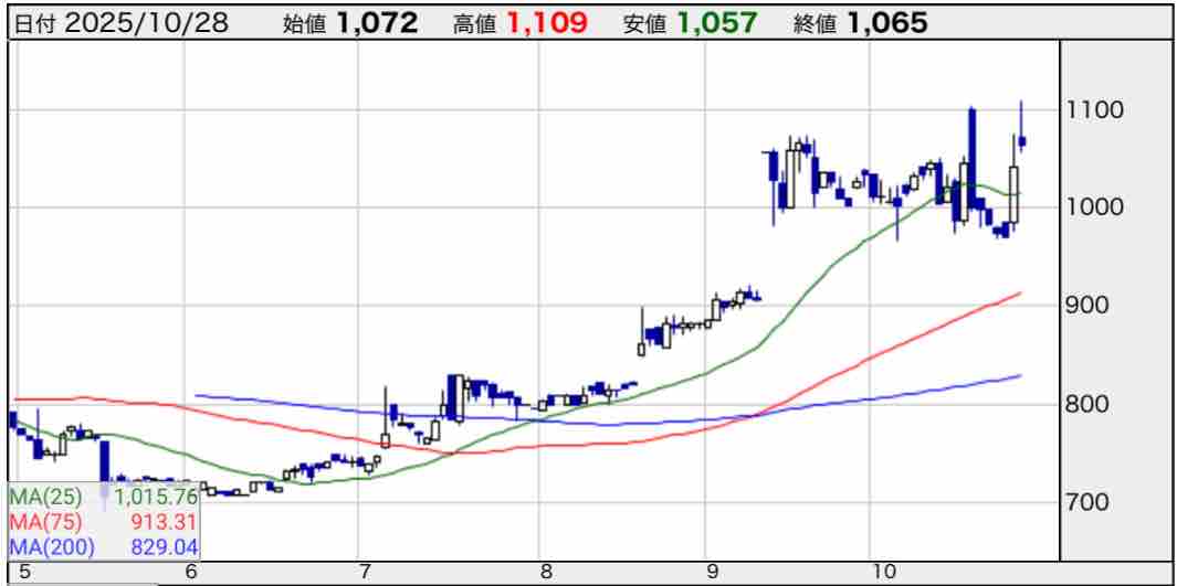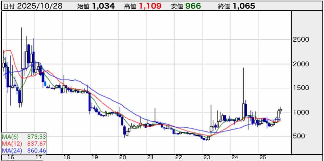 月足チャートを見ると、2023年の500円割れからようやく復活でしょうか?