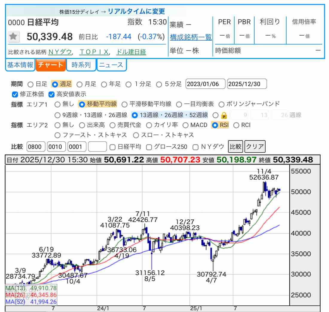 日経平均株価の終値は50,339円、昨年の大納会の終値が38,463円でしたので、+30%も上昇したことになります♪🙌