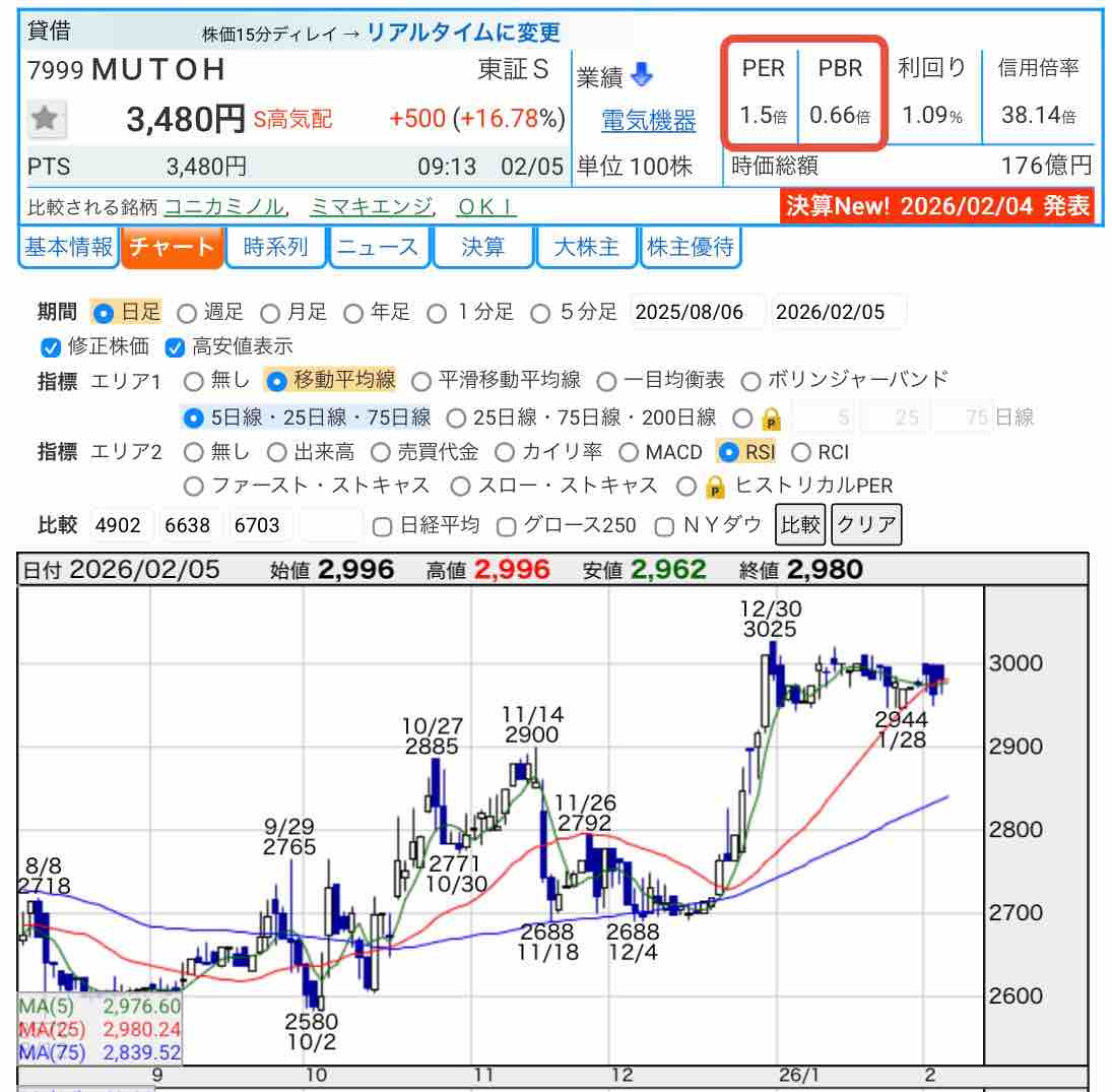 本日の株価は、もちろんストップ高です♪それでもPBR0.66倍で割安水準です。