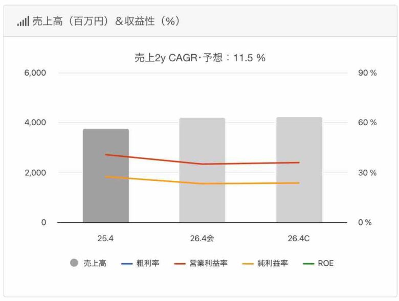 まだ上場したばかりで業績の推移が前期からしかありません。今期は増収減益を予想しています。