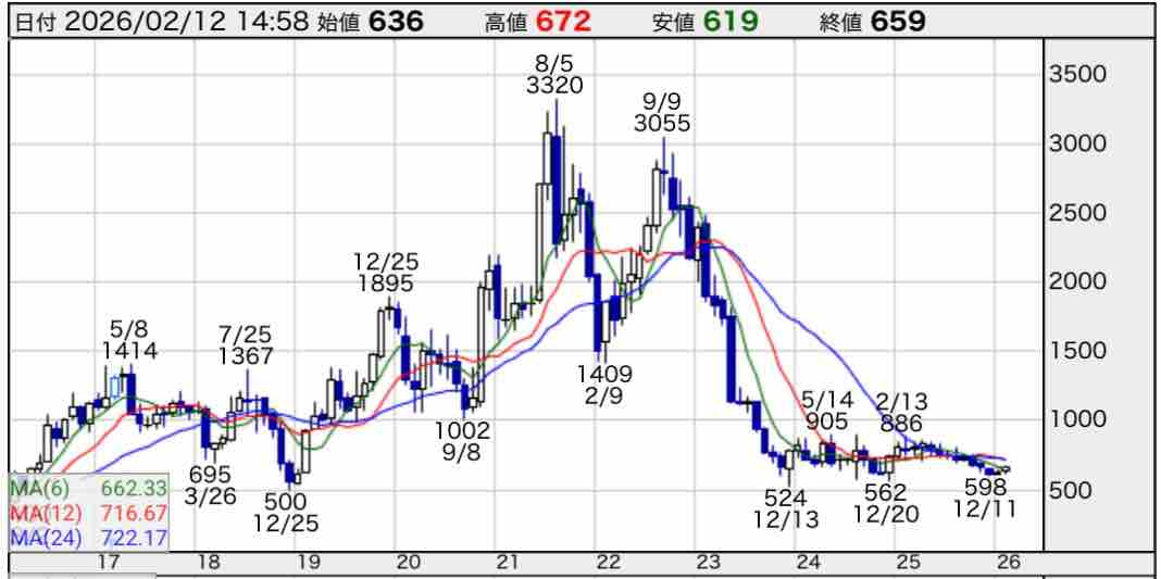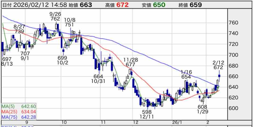 月足チャートを見ると下値付近を固め中です。