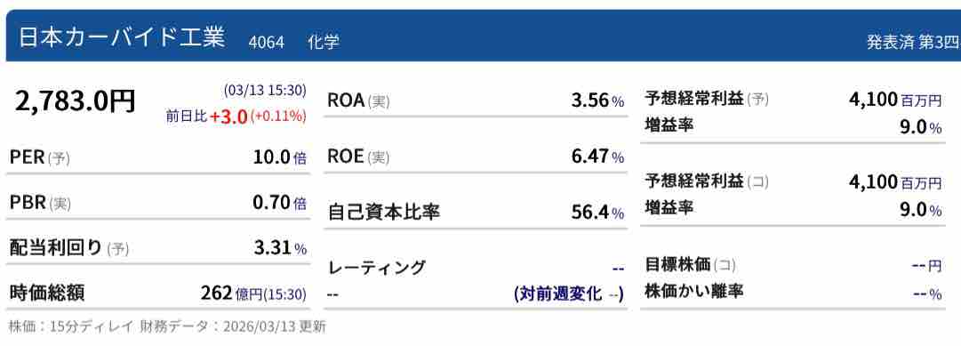 【新設株主優待】株価指標割安の【4064】日本カーバイド工業がデジタルギフト進呈へ!