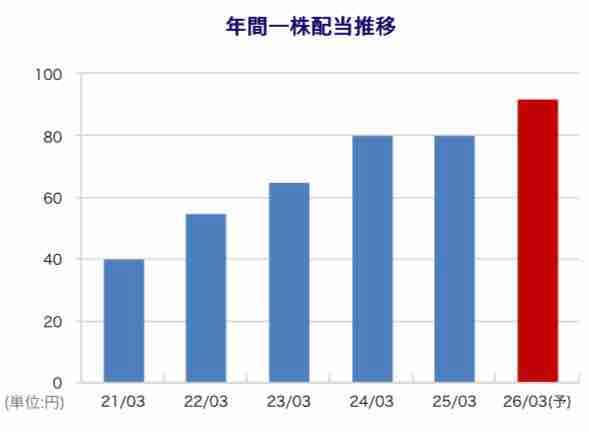 今期1株配当は12円増配の92円を予定しています。株価2783円とすると配当利回りは3.3%、配当性向は33%です。