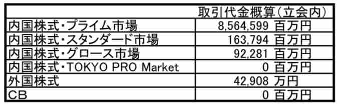 昨日の東京証券取引所の出来高が10兆円を超えたらしいのですが、本日も大商いの8.5兆円(プライム市場)でした。