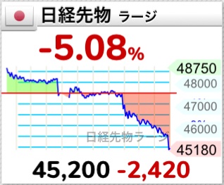 そして、週末の日経平均株価先物が5%以上下落しています😱