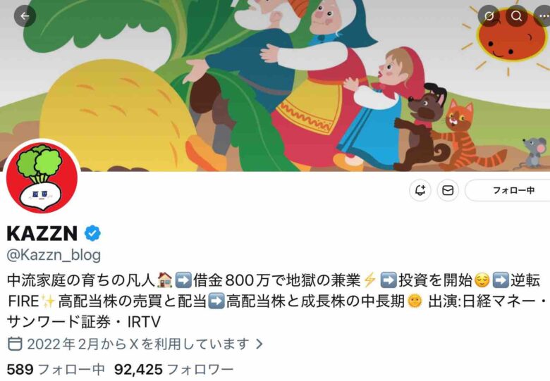 KAZZNは借金800万円から投資で大逆転し、FIREされた40代の専業投資家さんです!Xのフォロワーは9万人超えのインフルエンサー✨🎉もちろん、kinkoもフォローさせて頂いてます😊