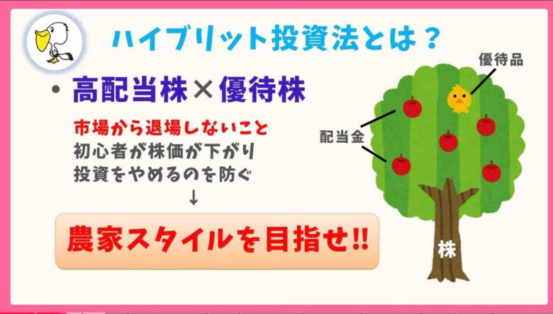 そんなペリカンさんの投資法は、高配当+株主優待株のハイブリッド投資です!