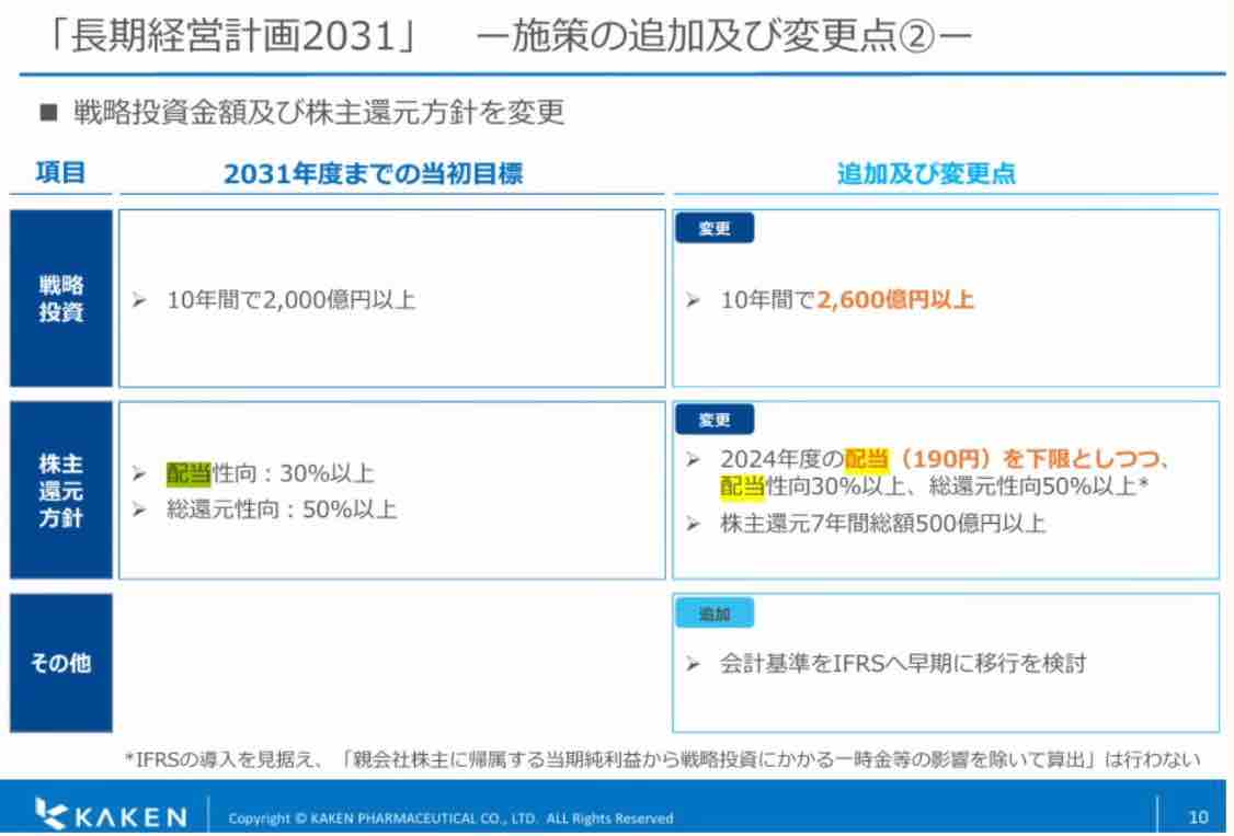 配当金は2031年まで下限配当を1株190円としています。