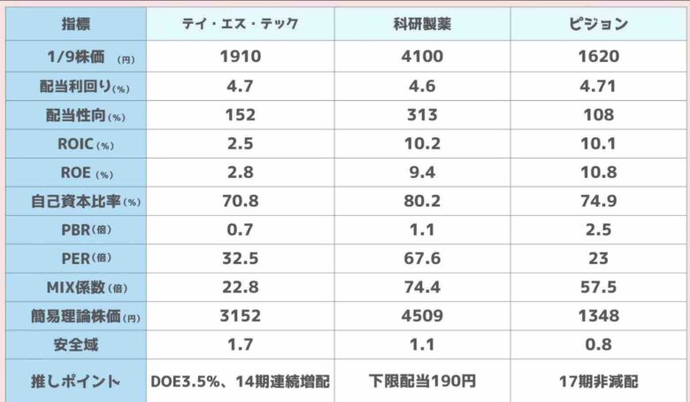 スクリーニングした3銘柄がこちらです。