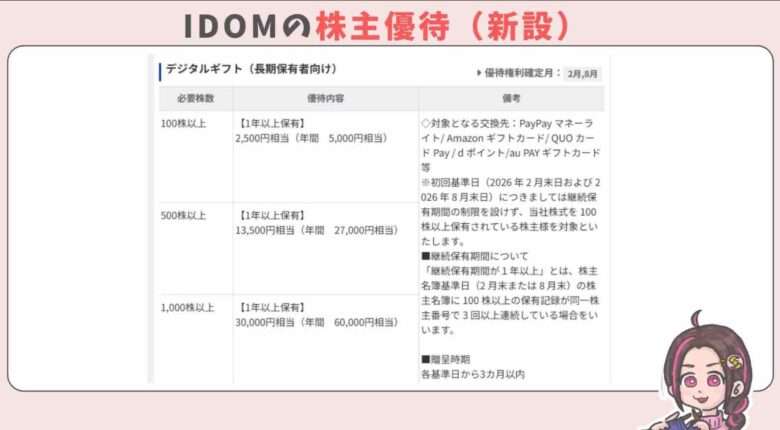 新設された株主優待は、100株以上でデジタルギフトが年間1万円分ももらえます♪配当金と合わせた総合利回りは6%超えになります。