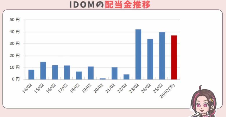 配当金は業績に応じた配当性向30%ほどですので、デコボコしていて安定はしていません。