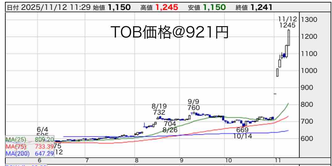 TOB価格@921円を遥かに上回る@1241円ですってー!
