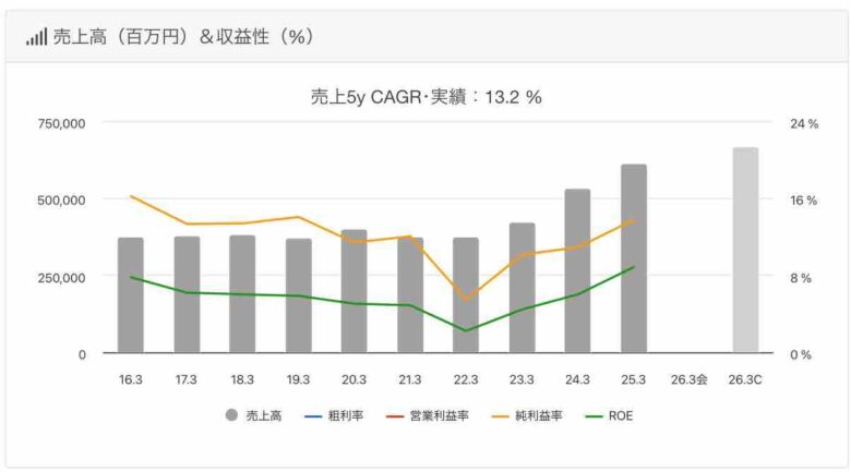 業績とチャート
