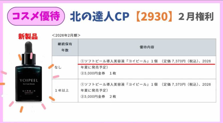 本来は1年以上保有の長期縛りがありますが、2026年3月末限定で¥5940の高級ヘアオイルがもらえます♪